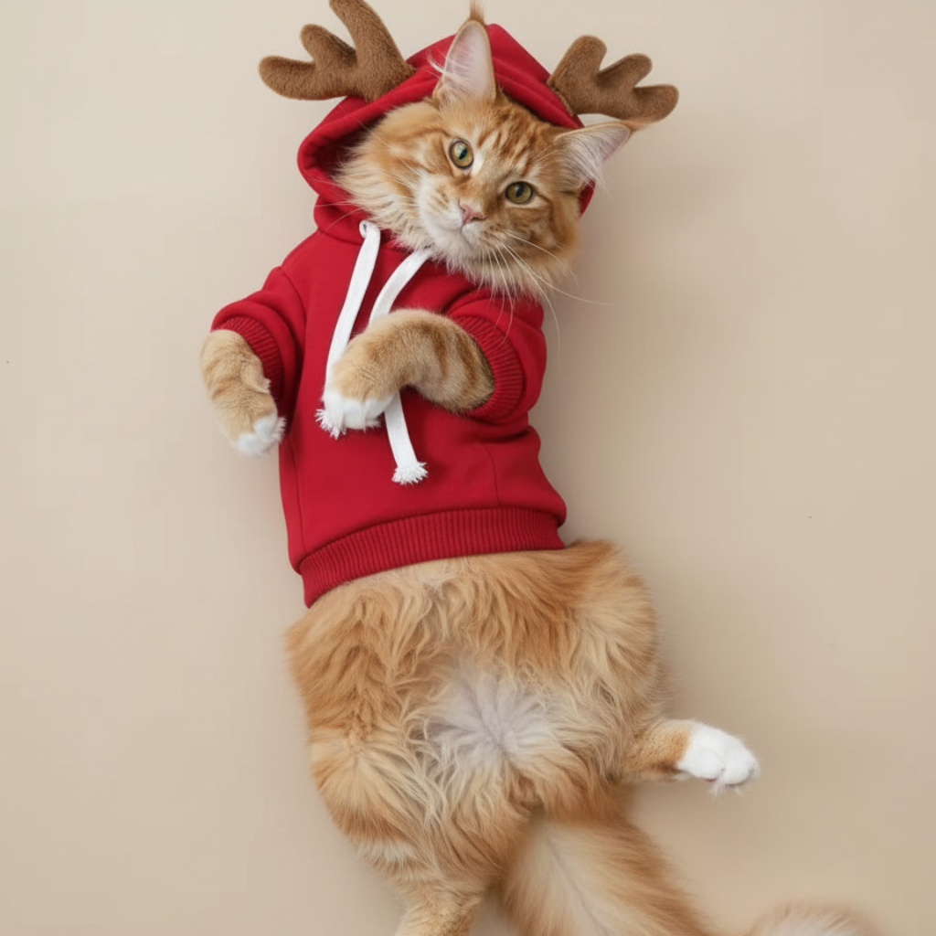 Gør din kat klar til jul med den uimodståelige julehoodie fra Snudles! Denne søde rensdyrtrøje er lavet af blødt syntetisk fleece, der holder din kat varm og komfortabel hele vinteren. Stoffet er let, slidstærkt og nemt at rengøre – perfekt til aktive og nysgerrige katte.