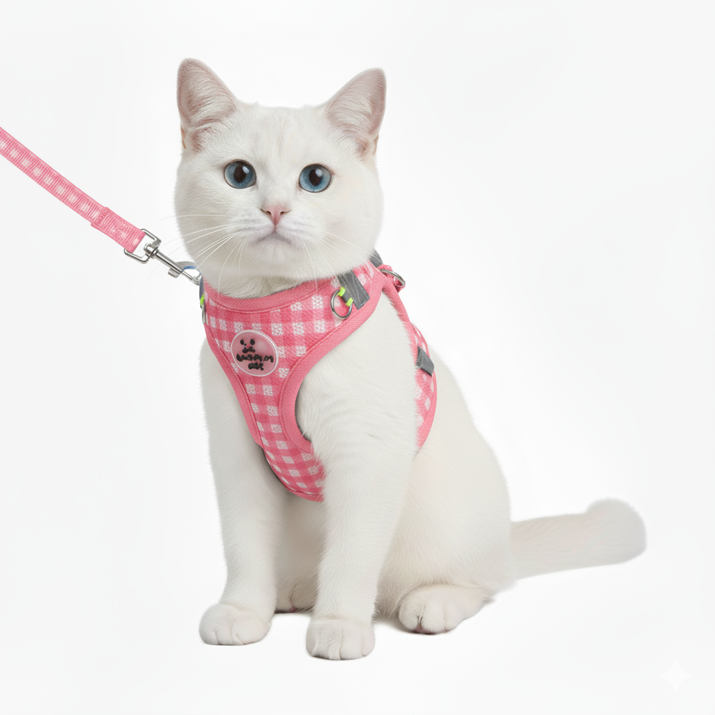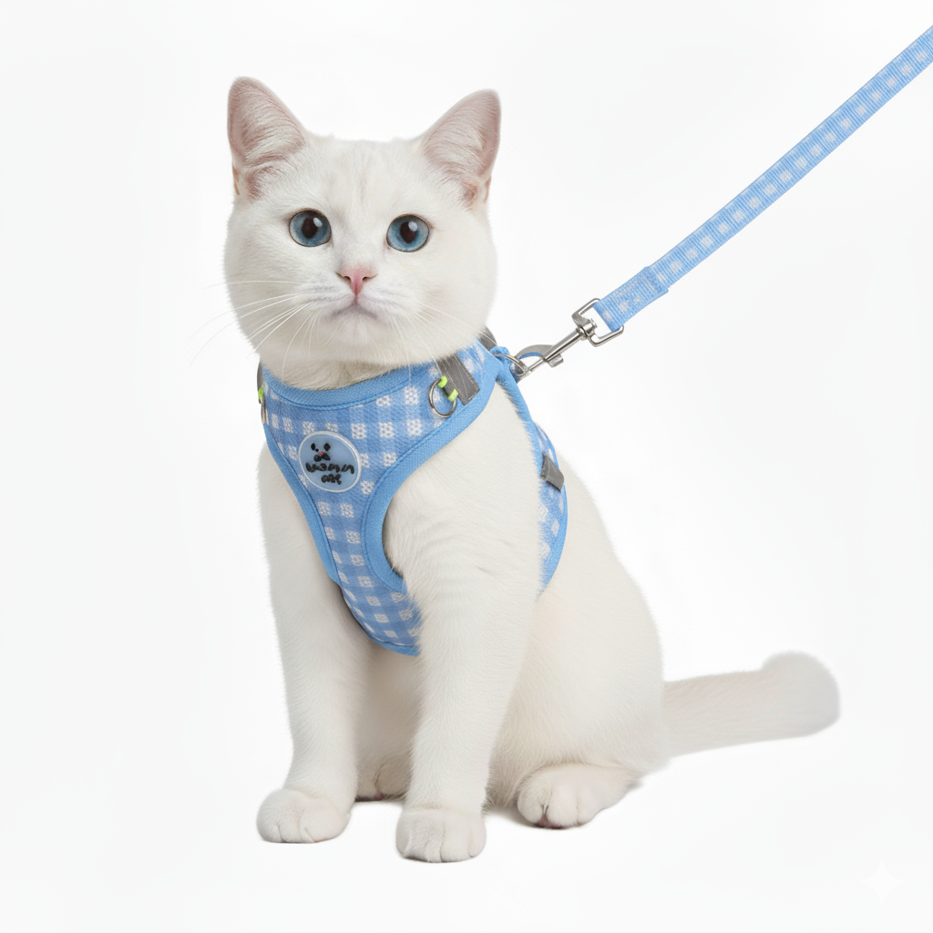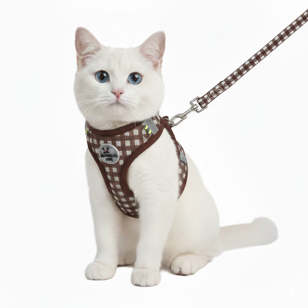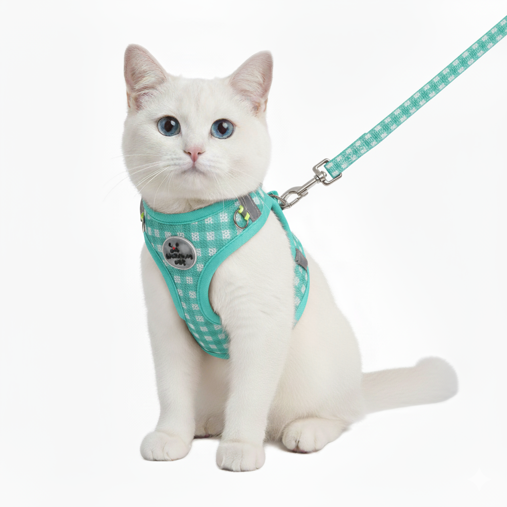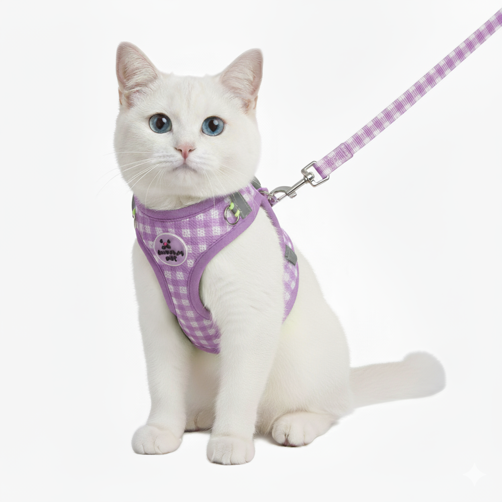 Snudles Katte harness & sele med snor – trendy ruitmønster, sikker og komfortabel